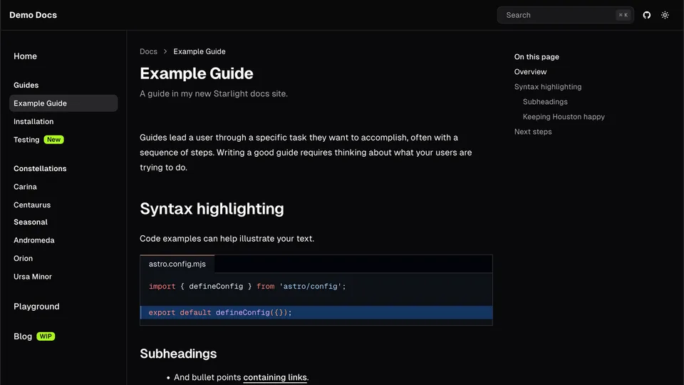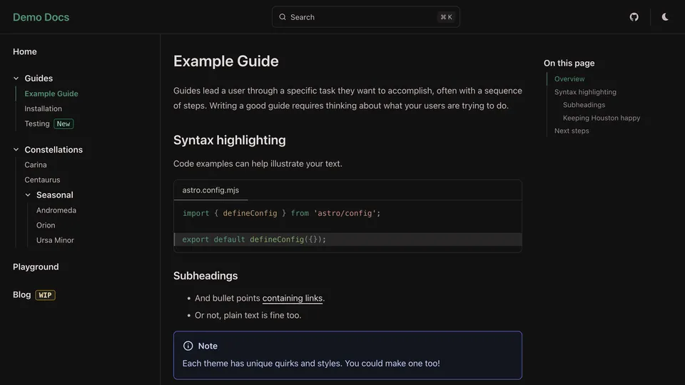 The one place to preview all Starlight themes.